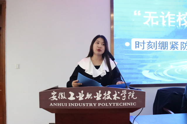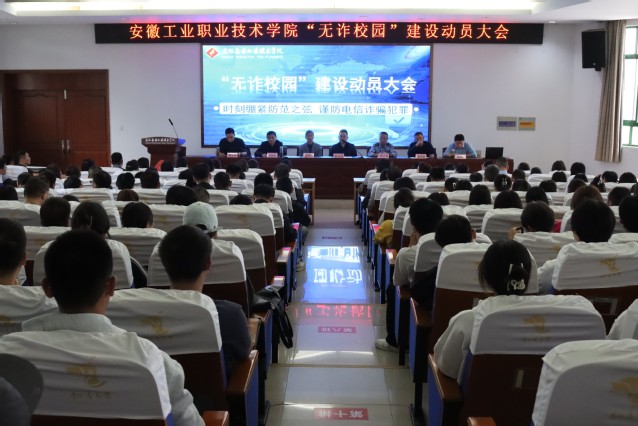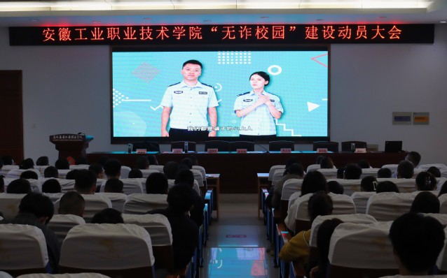 为认真贯彻落实中央和省委、省政府关于打击治理电信网络诈骗犯罪的决策部署,进一步提高广大师生的安全防范意识和财产安全意识,全力维护校园治安稳定,10月13日下午,学院在教学楼阶梯201报告厅开展“无诈校园”建设动员大会。铜陵市长江路派出所政治教导员黄太保、学院党政领导出席动员大会。学院各部门负责人,全体专兼职辅导员,合作单位班主任,22级、23级各班学生代表参加本次活动。活动由学院副院长黄仕银主持。