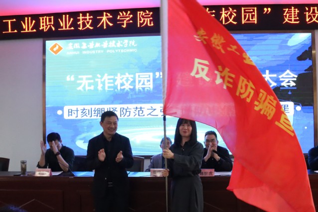 学院宣布成立“beat365官方网站反诈防骗宣讲队”,并由学院副院长秦华生为宣讲队授旗。