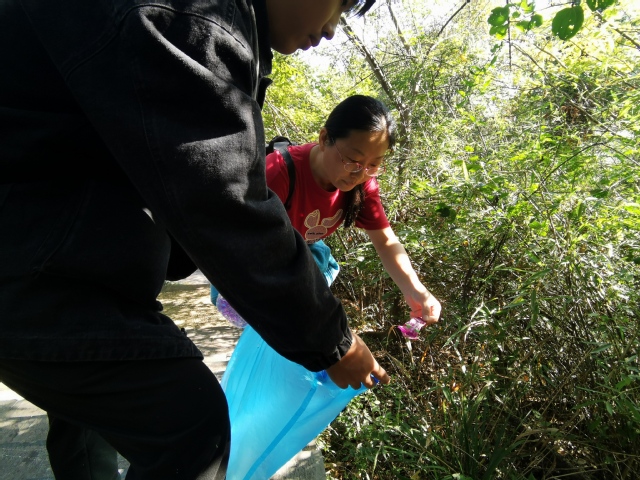 下山过程中,同学们纷纷拿出提前准备的垃圾袋,认真搜寻沿路两边的垃圾,用自己的实际行动践行环境保护人人有责的理念。一些带孩子爬山的家长,看到社员们的行动,纷纷称赞并以此教育自己的孩子,也要向大哥哥大姐姐一样爱护我们周围的环境。