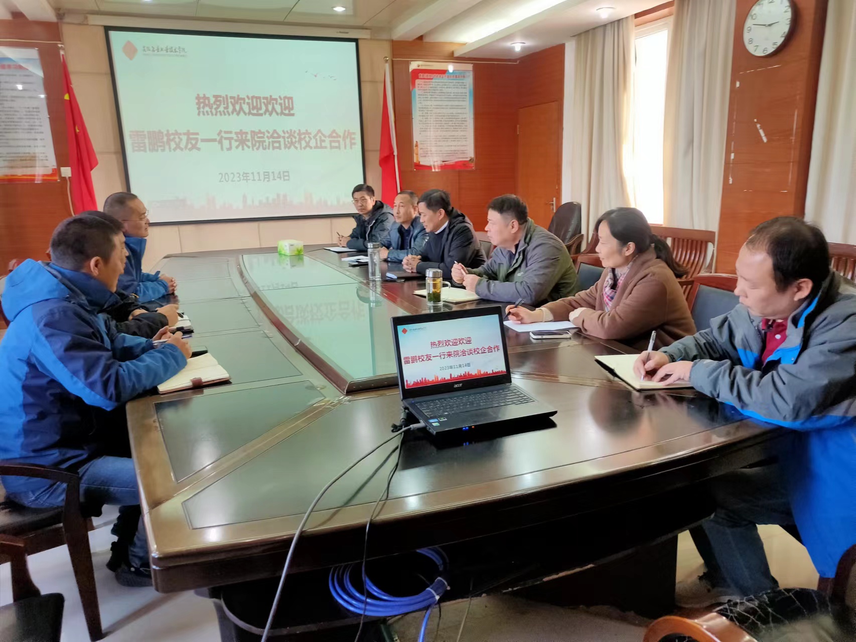 11月14日下午,英诺威阀业有限公司总经理、beat3652003届校友雷鹏一行来校洽谈校企合作。学院党委委员、副院长秦华生,学院党委委员罗海峰,教务处、招就处、机电学院相关负责人接待了雷鹏一行。