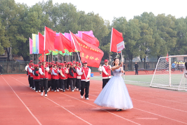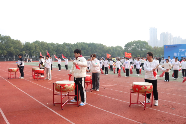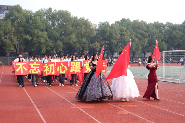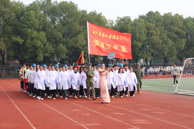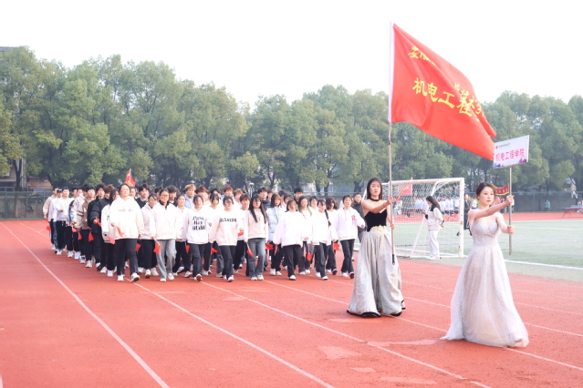 国旗、校旗、会旗方阵迈着整齐的步伐率先入场,大会正式拉开帷幕。青年志愿者彩旗方阵、学院各院系运动员代表方阵、有色技师学院代表方阵、铜陵技师学院代表方阵、教职工代表方阵及表演方阵依次列队入场。各院系代表方阵身着各具特色的服饰,面带笑容,喊着口号,昂首阔步,神采飞扬,在主席台下进行了富有院系特色的创意表演。现场精彩纷呈,掌声不断。表演方阵带来的表演《男儿当渴望光荣》和《象王行》把开幕式推向高潮,同学们跟着歌曲节奏用木棍敲击面前的大鼓,发出隆隆鼓声,挥动手中的红旗、舞动手中的扇子,不断变换阵型,用丰富的想象力和灵活的肢体动作,将“青春建功新时代,不忘初心跟党走”的口号付诸实际。