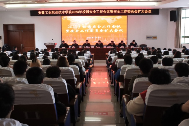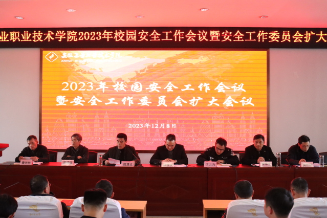 为深入学习贯彻习近平总书记关于安全工作的重要指示批示精神,认真落实党中央决策部署和省委省政府工作要求,12月8日下午,学院在教学楼阶梯201报告厅召开2023年校园安全工作会议暨安全工作委员会扩大会议。铜陵市长江路派出所副所长汪云海、学院党政领导,两级班子成员、各教研室主任、全体专兼职辅导员、各食堂授权经营者、食品卫生安全管理员、合作办学单位负责人、驻校民警、各班级学生代表参加本次会议。学院党委副书记范清义主持本次会议。