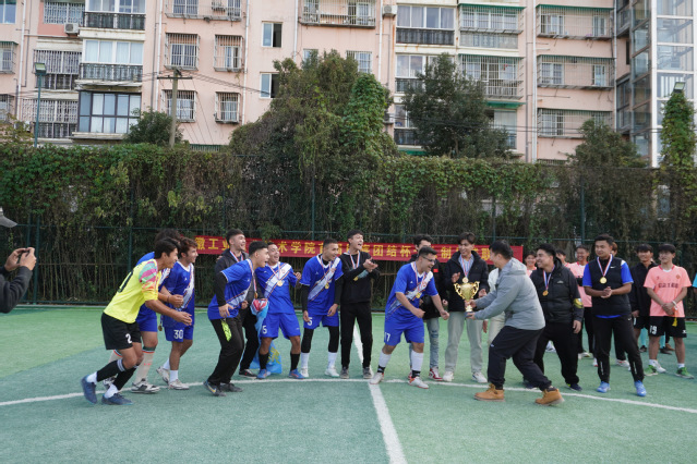 12月8日下午,伴随着决赛终场的哨响,2023年beat365官方网站首届“民族团结杯”七人制足球联赛圆满落幕。经过精彩激烈的角逐,少数民族代表队凭借出色的整体发挥勇夺冠军,资源开发系获亚军,机电学院获季军,信息工程系、管理工程系获优秀组织奖。