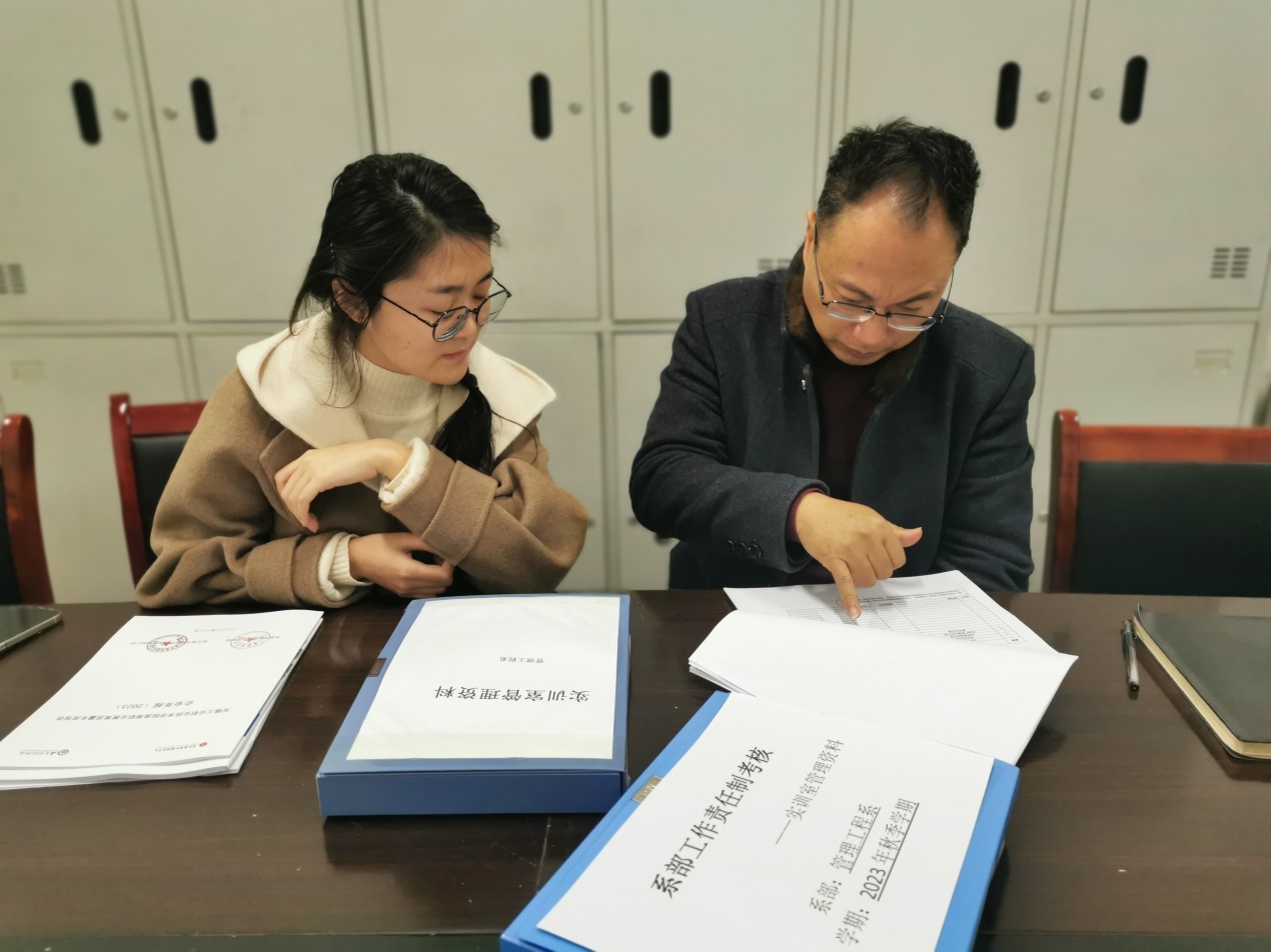 本次考核工作由教务处(质控处)牵头,分成两个考核小组,分别负责考核管理工程系、机电工程学院和资源开发系、信息工程系、基础部。考核现场,各考核人员认真查阅资料,与二级院系管理人员进行深入交流。
