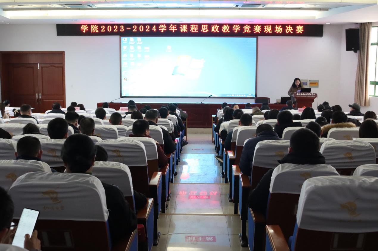 为切实加强学院课程思政建设,全面提升学院全体教师课程思政教学能力,高质量推进课堂教学改革,创新课程思政教学模式,鼓励全体教师深入挖掘课程思政内涵,充分发挥课程育人功能,不断提高人才培养质量,1月17日上午,学院2023-2024学年课程思政教学竞赛决赛在201报告厅拉开了帷幕。学院党委副书记范清义,党委委员、副院长曹芳胜,党委委员、副院长秦华生,党委委员、副院长黄仕银,党委委员罗海峰及全体专兼职教师观摩了本次大赛。
