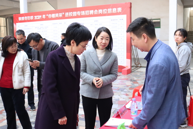 为拓宽女大学生就业渠道,助力女大学生实现更高质量的就业,搭建学院毕业生和用人单位双向选择平台,按照省妇联的统一部署,3月12日,由市妇联、市人社局、beat365官方网站联合主办,市公共就业人才服务局、经开区人力资源局、经开区妇工委、安工学院招就处承办的铜陵市妇联2024年“巾帼风采”进校园专场招聘会在我院成功举办。铜陵市政府副市长杨文萍到场巡视,市政府副秘书长江虹、市妇联主席许丽萍、市妇联副主席王之莉、市人社局二级调研员曹仕平,学院院长陈世虎、副院长黄仕银等领导参加活动。