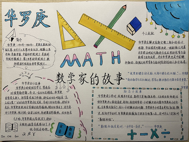 本次活动,学生们热情投入,把数学与生活紧密相连,介绍了个人运用数学解决生活问题、数学家们的故事、数学的趣味知识等内容。通过这次活动,学生提升了动手能力和素材整合能力,此外,观摩其他同学的手抄报,也使他们受益无穷。(撰稿:徐丹丹 审稿:薛亮)