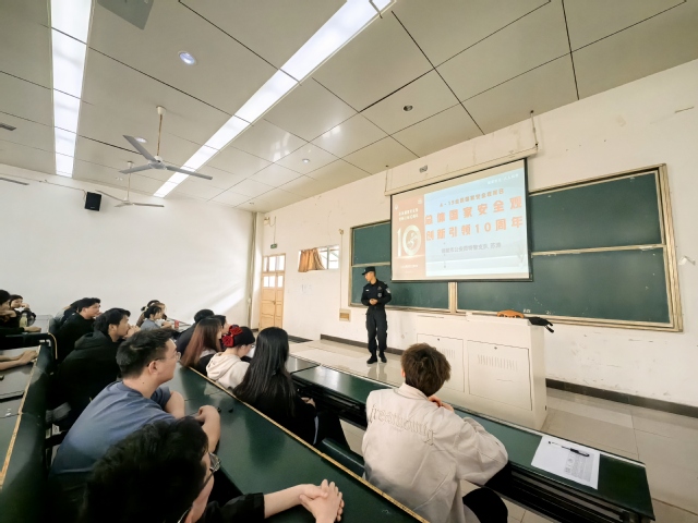 为进一步提高当代大学生国家安全意识,增强当代大学生维护国家安全的责任感,营造“国家安全,人人有责”的浓厚氛围,4月12日,在第九个“全民国家安全教育日”来临之际,资源开发系联合铜陵市公安局特警支队开展“全民国家安全教育日”普法宣传活动,为资源开发系的学子们开展了一场题为“总体国家安全观 创新引领10周年”的国家安全知识讲座。共有150余名学生参此次宣讲活动。