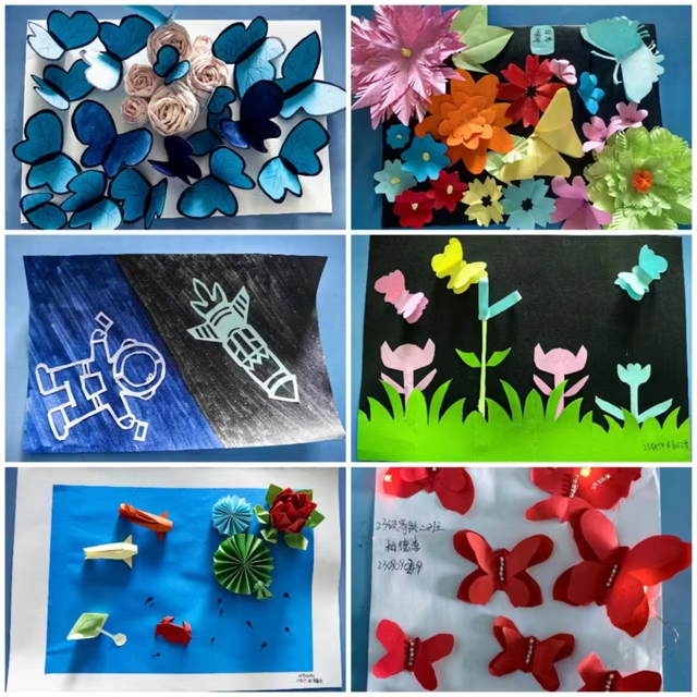 活动现场,来自不同班级学生们齐聚一堂,纷纷拿出自己的剪纸拼接作品。这些作品不仅涵盖了传统剪纸的各种元素,如花鸟鱼虫、吉祥图案等,还融入了现代设计理念和创意元素,使得整个活动充满了青春活力和创意气息。在拼接过程中,学生们互相交流、学习,共同探讨如何将传统剪纸与现代设计相结合,创造出更具时代感和艺术性的作品。他们用手中的剪刀和彩纸,将一个个零散的元素拼接成一幅幅完整的画面,这些画面既展现了学生们对传统剪纸艺术的热爱和传承,也体现了他们对现代设计理念和创意的独到见解。