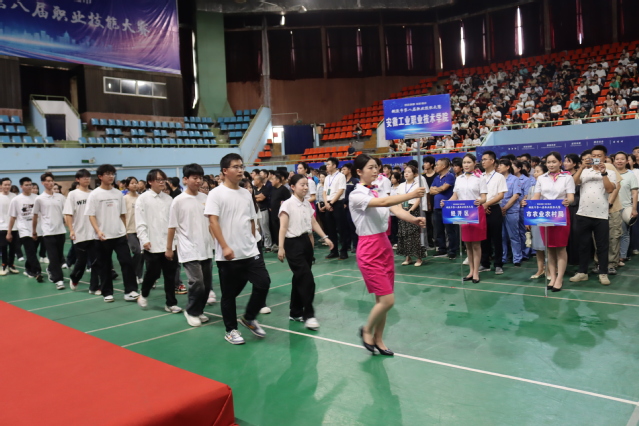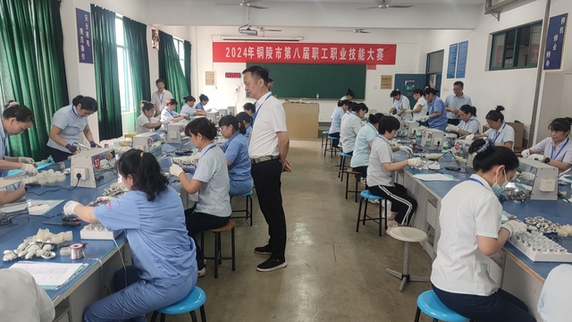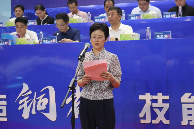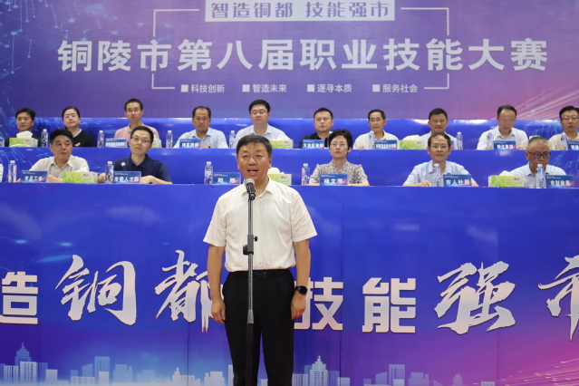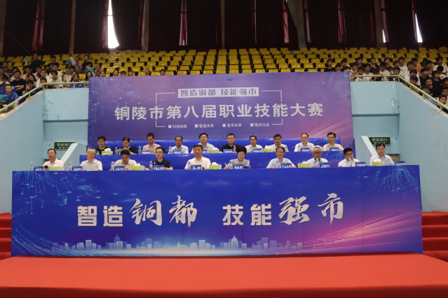 9月12日上午,铜陵市第八届职业技能大赛开幕式在beat365体育馆隆重举行。本次竞赛分为学生组、综合组,共设10个赛项,吸引全市十五支代表队参加比赛。铜陵市市委常委、组织部部长郑刚,副市长杨文萍,市委人才局、市人社局、市总工会、市财政局、市住建局、枞阳县政府、经开区、市农业农村局、铜官区、义安区政府、郊区政府、铜陵职业技术学院、安徽铜陵技师学院、安工学院、有色集团、铜化集团、中车铜陵车辆有限公司、铜峰电子相关领导出席开幕式。