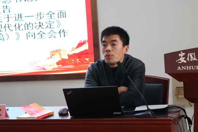开班仪式在庄严的国歌声中开始。会上,组织人事处负责人介绍本期培训班的教学安排和纪律要求;管理工程系代欣宇同学作为学员代表作表态发言;范清义作题为《紧扣中国式现代化主题进一步全面深化改革——党的二十届三中全会精神解读》的主题讲座。