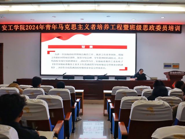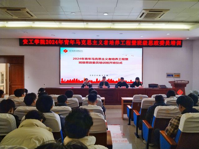 为深入学习贯彻党的二十届三中全会精神,切实提高大学生骨干思想政治素质,切实发挥学生班级思政委员作用,持续推进青年马克思主义培养工程,学院于12月6日至12月7日在阶梯201报告厅举办了2024年青年马克思主义者培养工程暨班级思政委员培训班第一次集中培训。培训班开班仪式在12月6日下午举行,学院党委书记范清义,学生处、思想政治理论课教学部、团委、二级院系团总支负责人参加开班仪式。