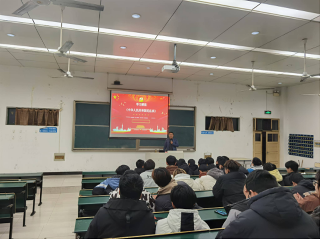 为全面落实国家“八五普法”宣传教育重点,充分发挥民法典在推动国家治理体系和治理能力现代化建设的重大作用,建设社会主义法治国家,激发社会创新发展活力,保障人民权益,12月12日,基础部在阶梯教室203开展《中华人民共和国民法典》宣传学习讲座,本次讲座由基础部孙彪老师主讲。