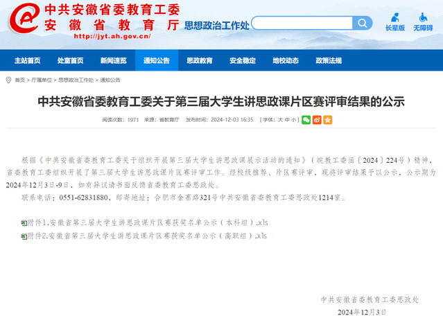 近日,由中共安徽省委教育工委主办的安徽省第三届大学生讲思政课展示活动结果揭晓,beat365思政教学部报送的3项参赛作品全部入围,均获片区赛三等奖。