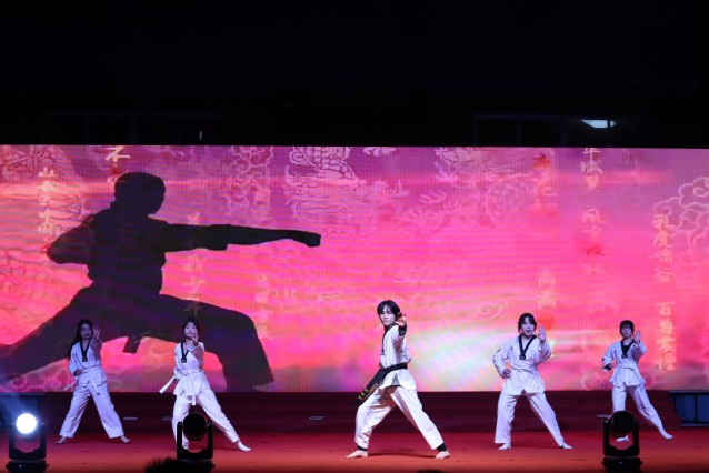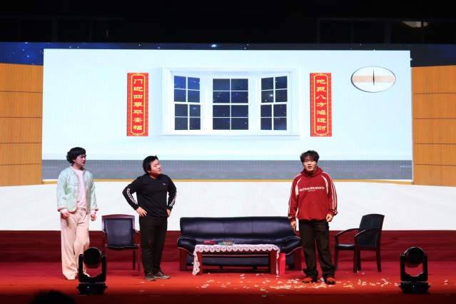 演出开场前,大屏幕上播放学院师生的新年祝福视频,为晚会营造了热情又温馨的气氛。随着银幕上巨大的数字归零,演出在一曲激昂的开场舞《鼓舞盛世》中震撼启幕,鼓声震天,舞姿翩跹,传递着对新年的美好祝愿,展现了beat365师生对传统文化的热爱与传承。
