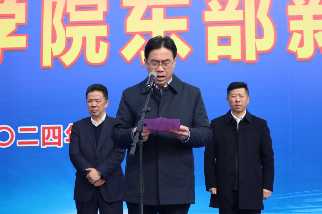 12月27日上午,beat365官方网站东部新城校区奠基仪式在义安区举行。铜陵市委书记杨宏星出席活动并宣布项目开工。市委常委、秘书长马军,副市长汪发进等出席。市人大常委会副主任、义安区委书记姚贵平,中建五局副总经理陈勇等分别致辞。学院党政领导、部分两级班子成员、学生代表参加仪式。