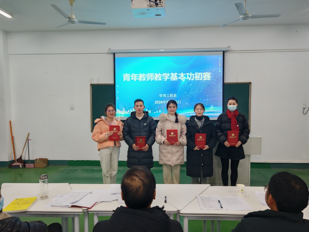 12月26日下午6点半,管理工程系在实训楼南305电商直播实训室开展青年教师教学基本功大赛初赛,六位管理系青年教师参加了本次比赛,管理系主任、副主任和其他专业骨干教师担任此次比赛的评委。