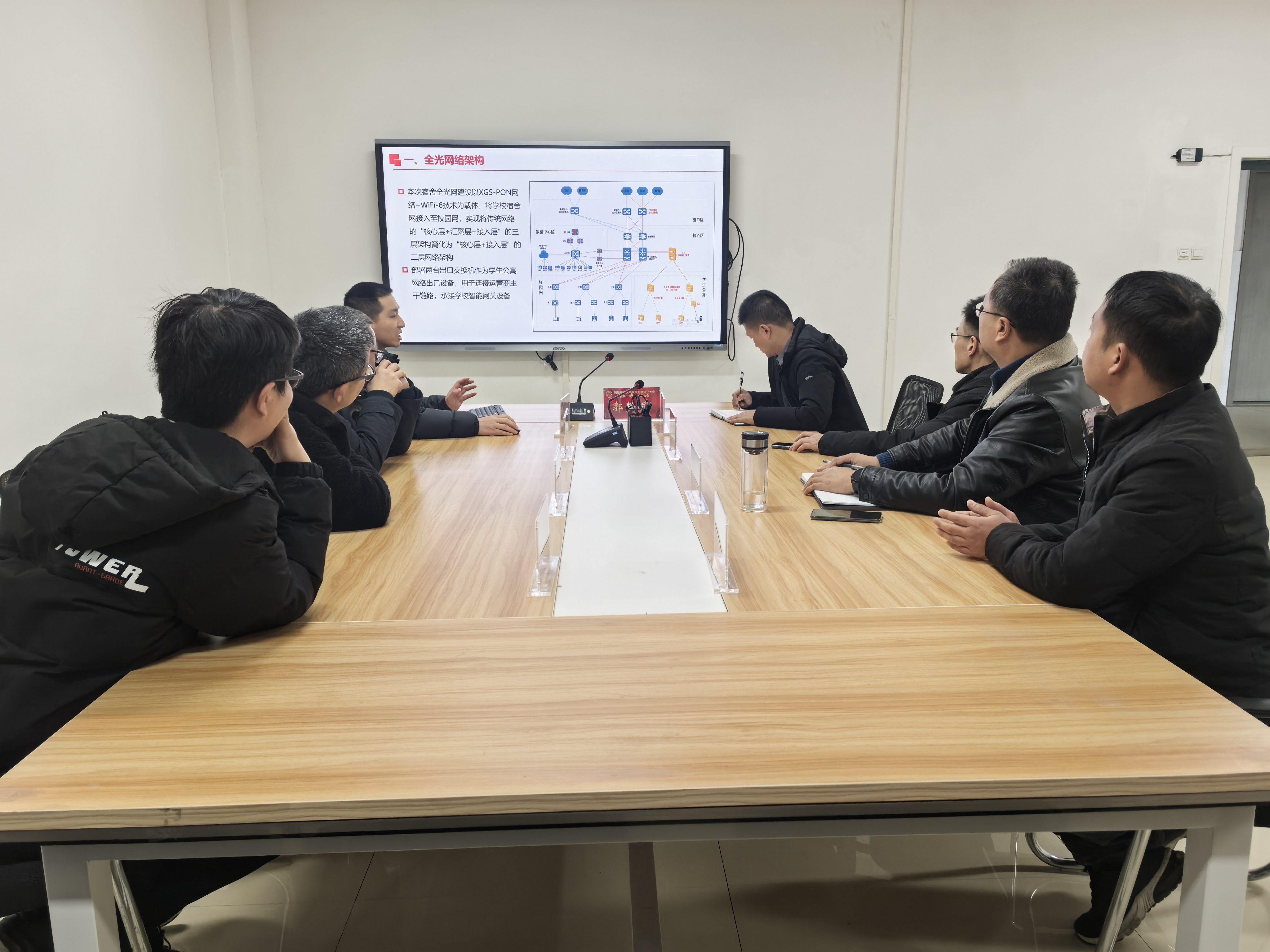 在交流会上,铜陵职业技术学院方主任就当前网络技术的应用、发展趋势及面临的挑战进行了深入讨论,根据学院实际,结合学院新校区的信息化建设给予了很多宝贵的建议;学院实数与数据资源管理中心主任表示,通过此次交流,希望能够借鉴铜陵职业技术学院在网络建设方面的成功经验,进一步提升学院实数与数据资源管理中心的服务质量和技术水平。