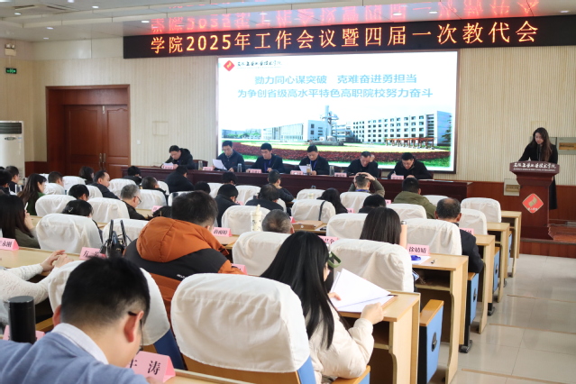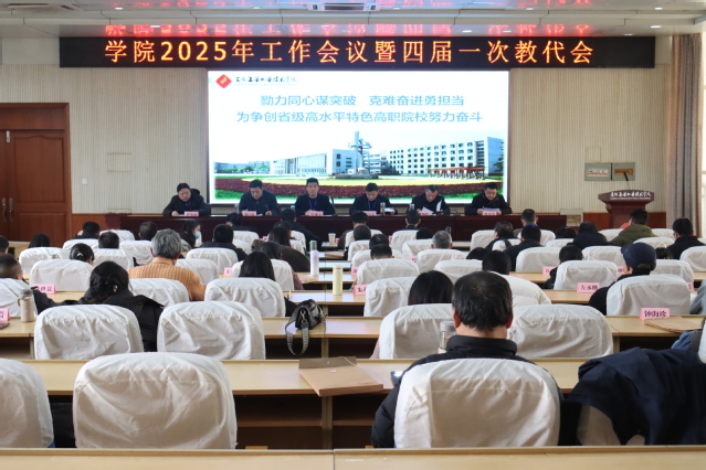 坚定信念谋发展,携手同心启新程。2025年1月17日,学院2025年工作会议暨四届一次教职工代表大会在教学楼阶梯301报告厅召开。大会总结学院各项工作成效,确立今后目标,凝聚力量,鼓舞人心。学院领导范清义、秦华生、黄仕银、曹芳胜、罗海峰、周庆华出席会议。60名正式代表,14名列席代表参加会议,为学院奋力推进高水平特色高职院校建设集民智、建良言、献良策。