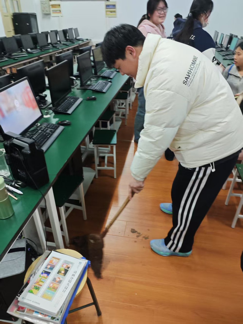 24广告2班、网络2班组织开展了“学雷锋,净扫校园”志愿服务活动,用实际行动美化校园环境,传递正能量。活动中,同学们分工合作,默契配合,认真清扫教室地面、整理机房桌椅。此次活动让同学们深刻体会到了劳动的快乐和奉献的意义,不仅美化了教室环境,更增强了同学们的环保意识、集体荣誉感和责任感。信息工程系将以此次活动为契机,持续开展形式多样的学雷锋主题活动,让雷锋精神在班级蔚然成风,引导同学们争做新时代雷锋精神的传承者和践行者。