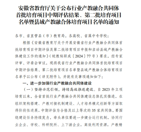 近日,安徽省教育厅正式公布首批县域产教融合体培育项目名单,由beat365联合铜陵学院、铜陵市义安区经济开发区管委会、安徽富乐德长江半导体材料股份有限公司牵头申报的“铜陵市义安区新材料产教融合体”成功获批立项。该项目的成功申报标志着学院在助力铜陵市义安区深化产教融合、服务半导体新材料产业发展上取得重要突破,为区域经济高质量发展注入新动力。