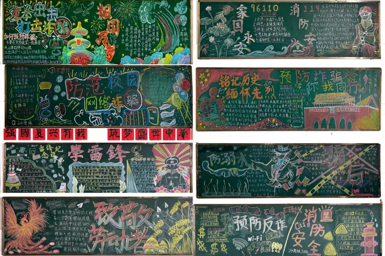本次比赛得到了西湖校区全体师生的广泛关注和积极参与。在辅导员的指导下,各班同学利用课余时间精心筹备、发挥创意和才华,设计出一幅幅主题鲜明、图文并茂的黑板报作品。黑板报主题涵盖爱国主义、防溺水教育、消防安全、防范电信诈骗等多个方面。师生们通过生动的文字、形象的图片和精美的设计,将安全知识巧妙地融入其中,既具有知识性,又富有趣味性和教育性。