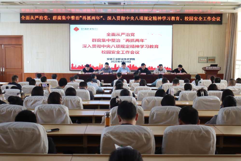 4月10日,为高效率传达上级会议精神、部署学院党建、安全等方面重点工作,学院采取“四会合一”的方式在教学楼阶梯301报告厅召开学院2025年全面从严治党、群腐集中整治“再抓两年”、深入贯彻中央八项规定精神学习教育和校园安全工作会议。学院党政领导、全体中层管理人员、各教研室主任、各支部纪委委员、各单位(部门)安全员、全体专(兼)职辅导员、学院专职食品安全员等参加会议。