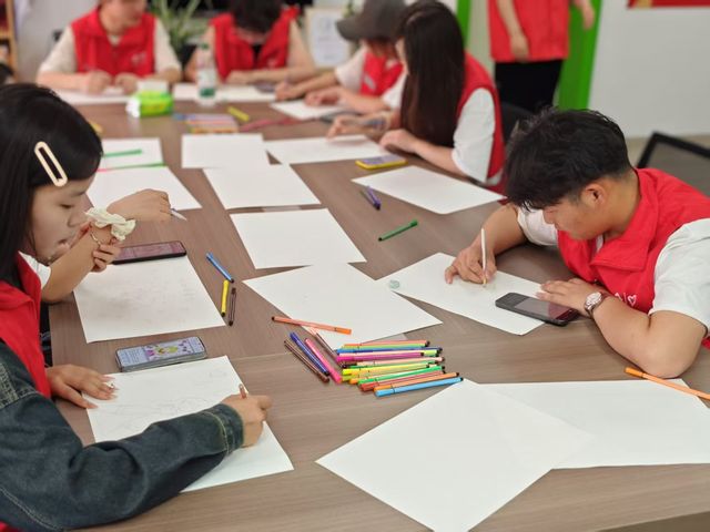 随后的画画和手工制作环节将活动氛围推向了高潮。青年志愿者为孩子们分发了画笔、彩纸等材料,耐心地指导孩子们创作。孩子们发挥自己的想象力,用稚嫩的小手绘制出一幅幅充满爱意的画作,有的画上了和妈妈手牵手在花园里散步的场景,有的描绘了一家人幸福生活的场景;还有的孩子用彩纸精心制作了贺卡、花朵等手工艺品,写下对妈妈最真挚的祝福。妈妈们看着孩子用心完成的作品,脸上满是欣慰与感动。