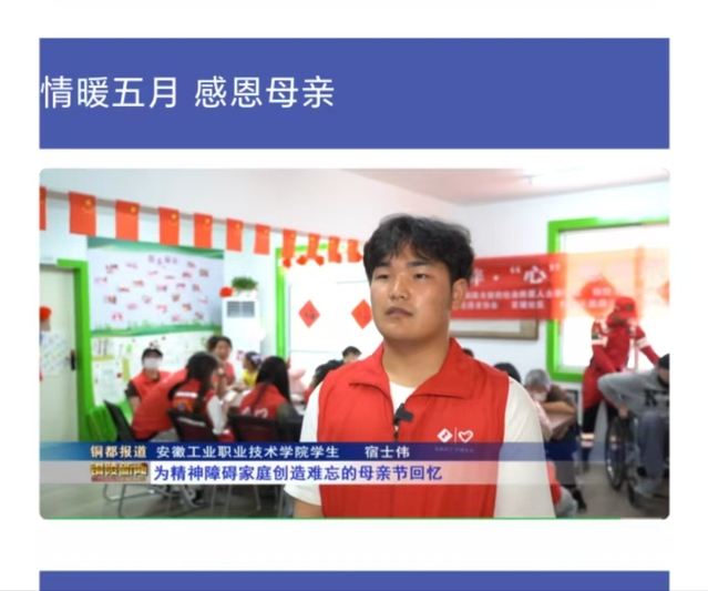 在母亲节这个充满爱与感恩的日子里,为了让特殊家庭感受到社会的关怀与温暖,5月11日,学院团委组织青年志愿者走进铜官区蕴藏公益服务中心官塘社区站点,开展“温暖相伴・‘心’意母亲节”活动,8名青年志愿者协会成员与特殊家庭的妈妈孩子们共度了一段温馨难忘的时光。