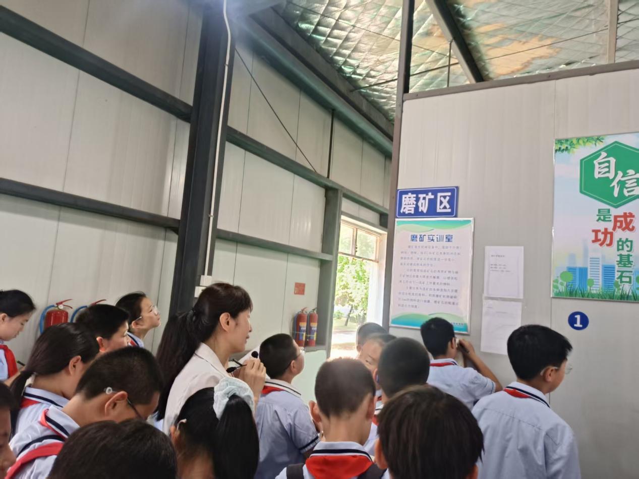 进入选矿实训室,学生们立即被摆放在桌上的各种颜色形状的原矿矿石标本吸引了,“这些是什么石头”“好漂亮呀!”“我能摸摸吗?”。资源开发系选矿专业教师引导学生逐个摸了摸原矿矿石标本,认识了标本的名称,对黄铜矿、黄铁矿、石英石、赤铁矿、磁铁矿等矿石的颜色、性质、作用、提炼产品一一作了讲解,简单介绍了磨矿、选矿的工艺。学生们纷纷拿出纸笔认真记录,“原来我们平时看到的铜铁来源这些原矿,好神奇呀!”学生们惊奇的感叹道。