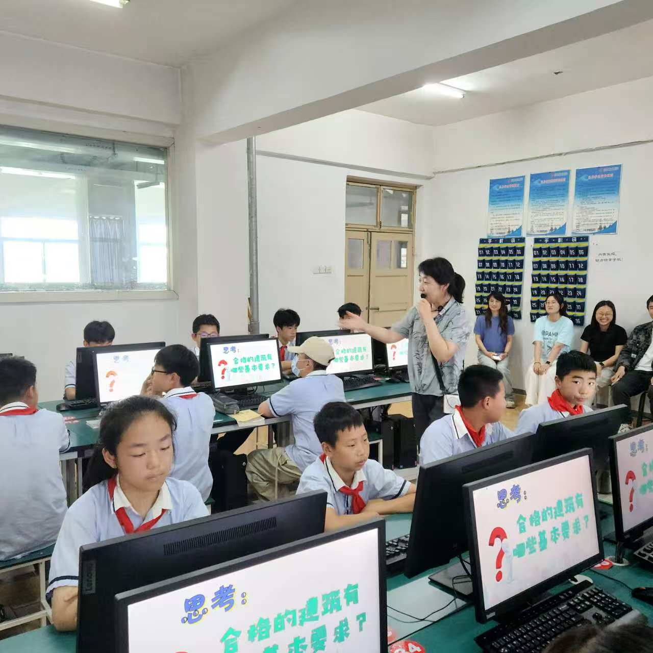 在建筑机房里,资源开发系建筑专业教师以“什么是建筑”为切入点,用通俗易懂的语言向同学们介绍了建筑的基本概念。通过“建筑如何站立”和“建筑材料大揭秘”等环节,深入浅出地讲解了建筑的传力系统及不同材料的特性,让小学生们了解到建筑背后的科学原理。在“建筑奇观”环节,老师结合古今中外的经典建筑案例,向同学们展示了建筑发展的历史脉络和未来趋势,让他们感受到建筑的魅力与无限可能。最后的“小学生量房互动”环节更是将课堂气氛推向高潮,同学们踊跃参与,亲手体验测量与设计的乐趣,在实践中加深了对建筑知识的理解。