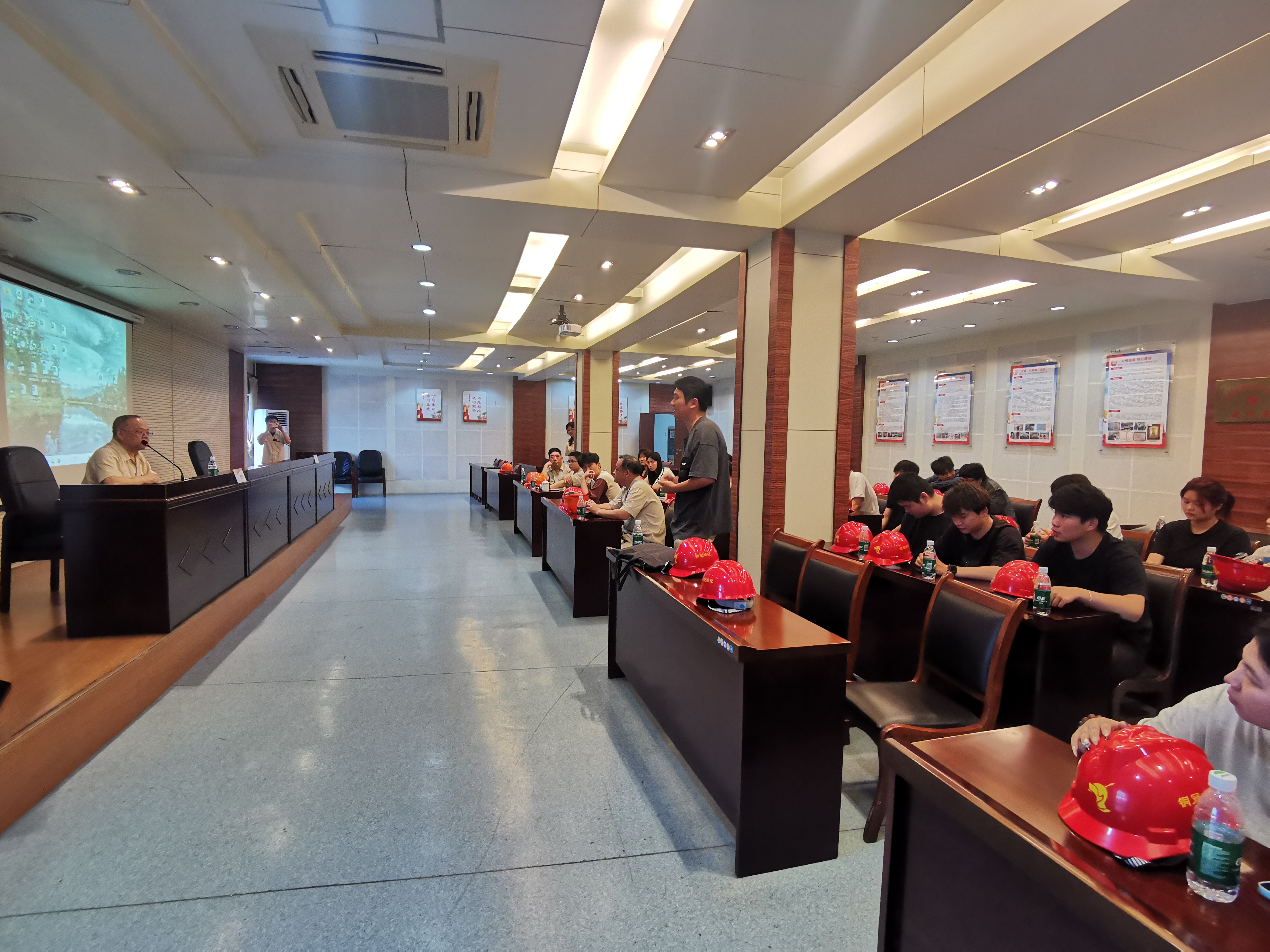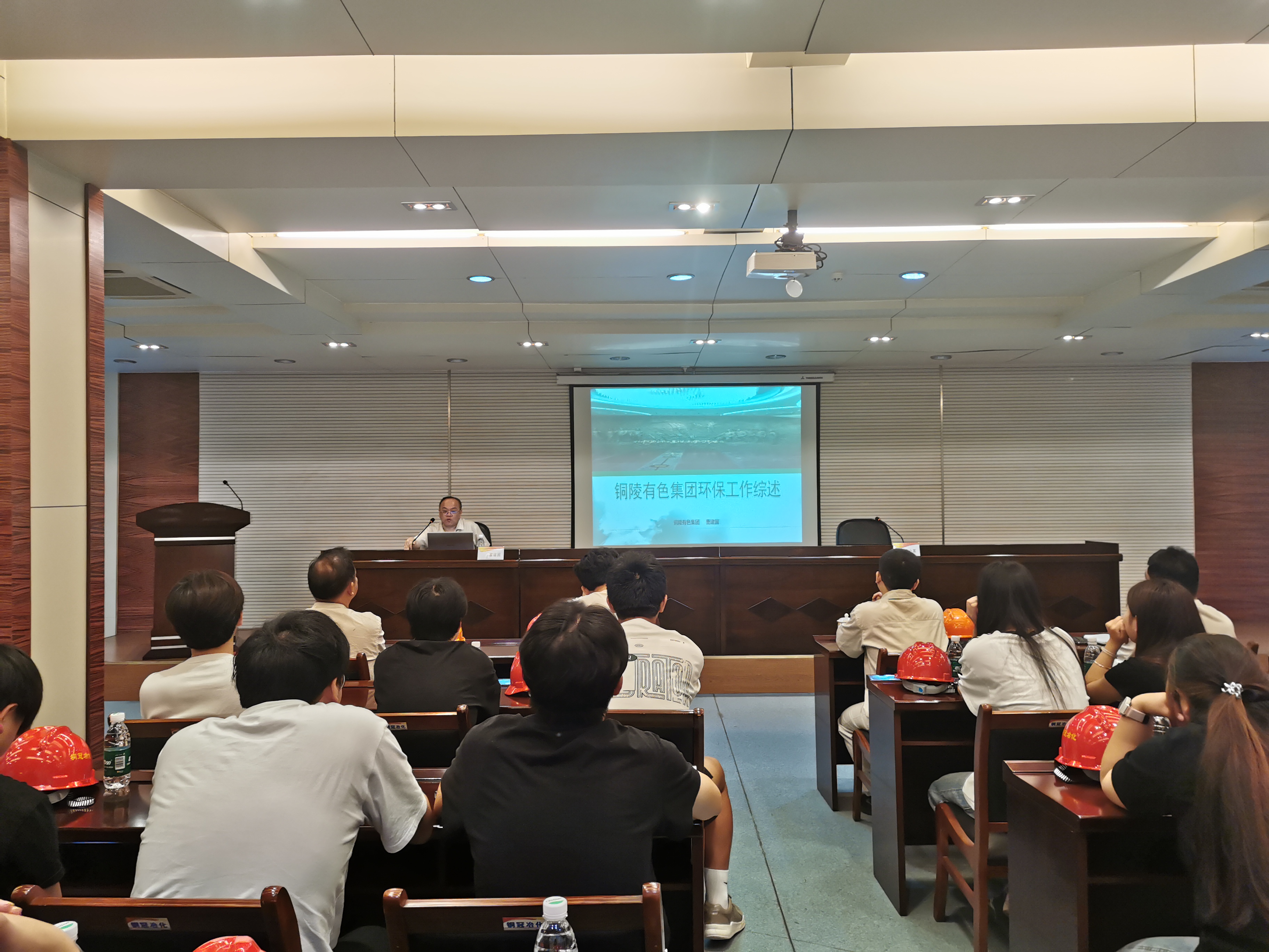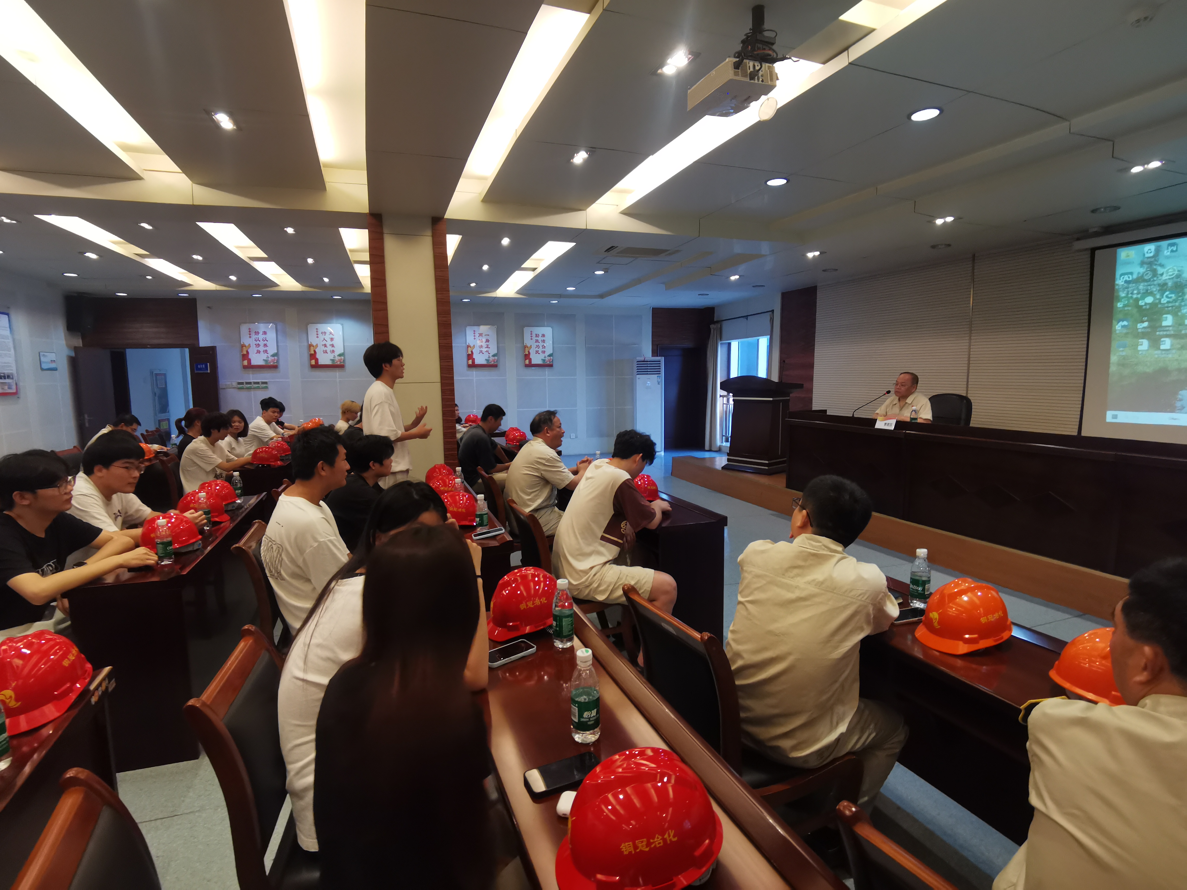 活动中,铜冠冶化安环部副部长卢冰针对铜冠冶化分公司及环保管理情况、铜冠冶化分公司的生产工艺及环保工作做了详细介绍;副总曹建国从“公司简介”“生产工艺概述”“铜冶炼板块环保综述”“矿山和铜加工板块环保综述”等四个方面,对铜陵有色金属集团股份有限公司环保管理情况做了详尽介绍;张北强部长对照单位沙盘向学生解读公司的生产工艺流程;综合车间吴思银主任带领师生参观污水处理站,并详细介绍了污水处理流程。