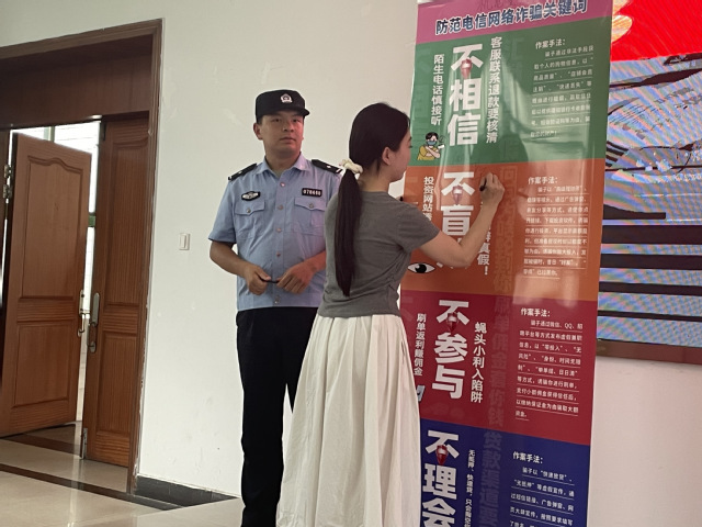 活动中,师生们在“反诈承诺墙”上郑重签下姓名,签名墙上的每一个名字,都是对“绷紧防范之弦,远离诈骗之患”这一主题的最有力回应和最庄严承诺。此次活动不仅有效提升了师生的识骗防骗能力,更在校园内凝聚了强大的反诈共识。活动所传递的“警惕之心”“防范之术”和“责任之担”,已深深烙印在参与者的脑海中。签名墙将成为校园内一道永恒的安全警示,时刻提醒师生绷紧防范之弦。
