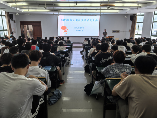 6月23日下午,机电工程学院2023级711名学生在阶梯101教室分三场参加了岗位实习动员大会。大会由机电工程学院教学负责人和学生口负责人分别就实习业务内容和安全事项进行了详细讲解。