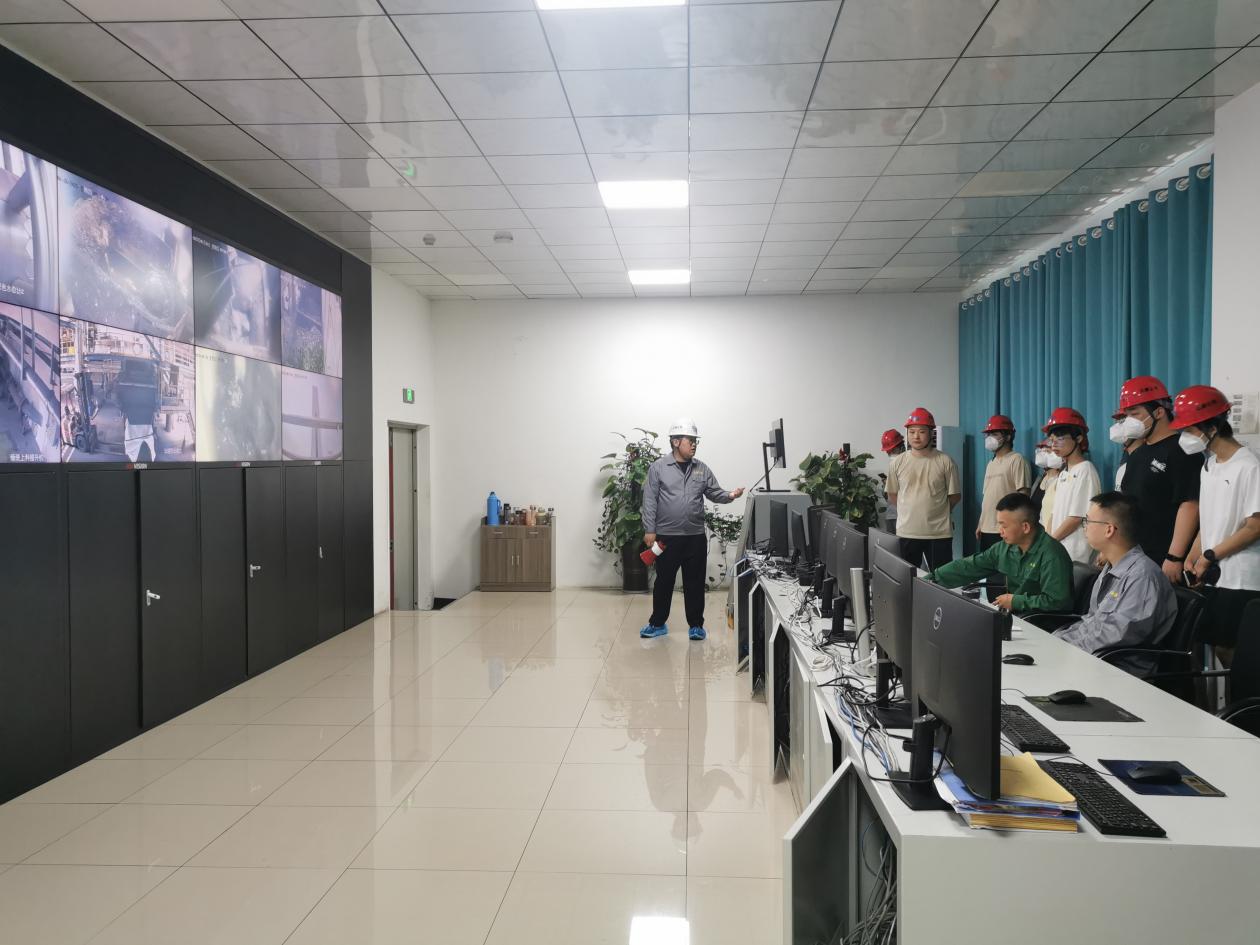 在核心处理区,同学们依次参观了危废焚烧系统——回转窑、渣处理设备、尾气净化设备及中控室。回转窑温度可达1100℃以上,能有效分解有害物质。后续通过急冷塔、布袋除尘等工艺,确保排放达标。所有上述具体工艺指标,都是由中控室DCS控制系统操控完成,中控室相当于企业的“大脑”,必须时刻保持“清醒”。