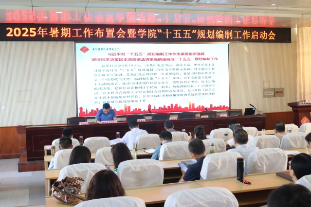 为扎实做好2025年暑期各项工作,7月11日,学院在教学楼阶梯302报告厅召开2025年暑期工作布置会暨学院“十五五”规划编制启动会,学院两级班子全体成员参加会议,党委副书记黄仕银主持会议。
