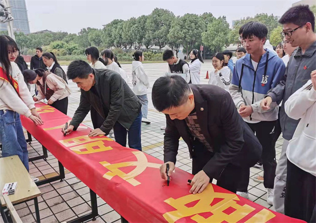仪式结束后,师生代表纷纷在宣传横幅上签名,庄严承诺在今后的学习生活中的说文明话、行文明事、做文明人,用青春和实际行动唱响文明的音符,共同书写校园文明的新篇章。