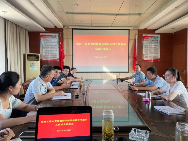9月23日下午,学院在第一行政楼四楼会议室召开了党群工作会暨师德师风建设问题专项整治工作动员部署会,会议由学院党委书记李庆峰主持,学院党委副书记范清义、学院办公室、组织人事处、宣传统战部、团委、各党支部书记参加了会议。