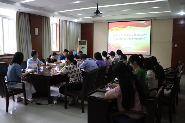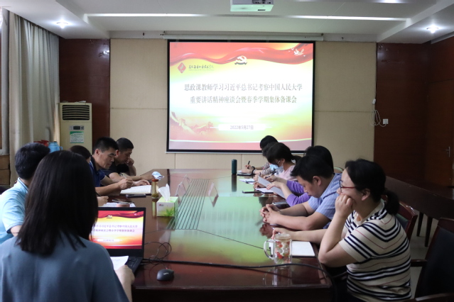 会上,与会人员共同学习了习近平总书记考察中国人民大学重要讲话精神、习近平总书记在庆祝中国共产主义青年团成立100周年大会上的讲话精神。大家围绕学习讲话精神的所思所悟、新时代思政教师如何上好思政课、春季学期大学生思想政治状况及意识形态风险点等方面内容分别作了交流发言,并针对2022年校级党建思想政治工作研究课题申报工作进行了现场动员。