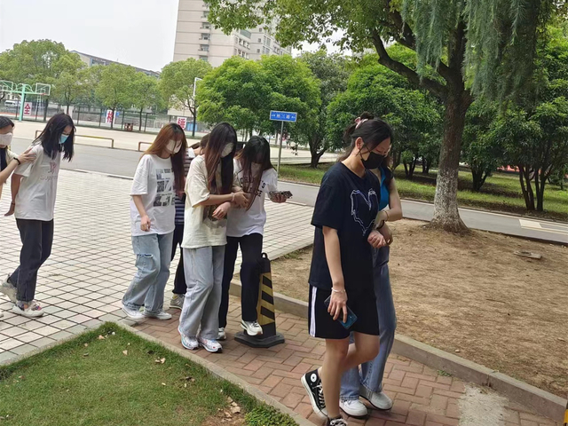 活动中同学们两人一组,每组选出一名队员带上眼罩,在这一段荆棘的道路上需要完全信任挽扶你的队友。活动进行中有部分同学在遇到障碍时没有保护好队友,致使队友被树枝或其他障碍物碰到。之后同学们认真吸取教训,总结经验,相互配合,克服困难走完了全程。同学们在活动中感触颇多,体验到盲人生活的不易,并表示会尽自己一份力,主动清理盲道为盲人同胞提供一个良好的环境。