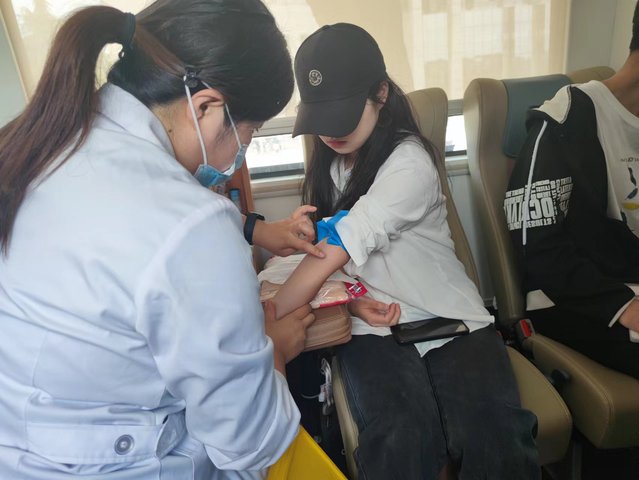 活动现场,负责人有序进行登记,健康筛选,血液检测,等待结果,检测合格后进行血液采集,采集完成后有序领取献血证离场。