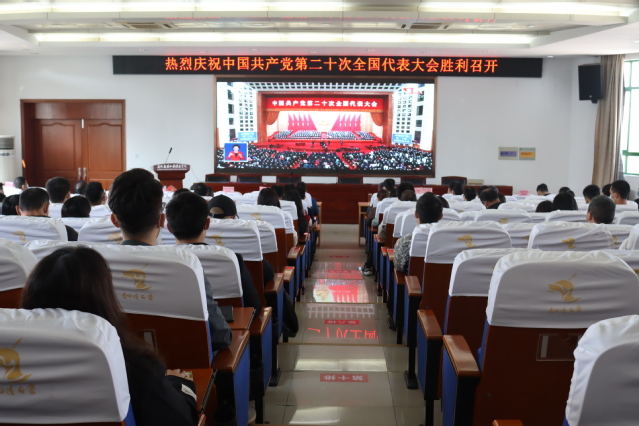 10月16日上午10时,中国共产党第二十次全国代表大会在北京人民大会堂隆重开幕。学院党政领导、党员代表和学生代表在阶梯201报告厅集中收听收看了开幕会现场直播。