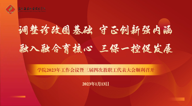 踔厉奋发谋新篇,凝心聚力启新程。2023年1月13日,学院2023年工作会议暨三届四次教职工代表大会在教学楼阶梯301报告厅召开。大会总结学院工作成绩,明确今后任务,凝心聚力,振奋人心。学院领导李庆峰、陈世虎、范清义、周理瑞、曹芳胜、秦华生、黄仕银、罗海峰出席会议。64名正式代表、10名列席代表、1名特邀代表参加会议,为学院高质量发展集民智、建良言、献良策。