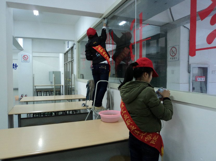 11月30号下午,参加此次志愿活动的同学们都很准时到达活动现场。在活动开始前,我们负责人为所有参加活动的志愿者们讲述了清扫图书馆活动过程中的注意事项,首先是安全问题的强调,其次如活动过程中保持安静,地面不能太湿,做好死角的清理等一些注意事项。我们负责人并给每位志愿者分配好任务,有利于活动有效有序的进行。 活动中,每位志愿者工作的都很细致,认真,从他们一个个笑脸中,我们体会到了作为一名志愿者的自豪,奉献爱心的快乐,志愿者精神的强大魅力。志愿者们擦拭着一排排书架,擦着一块块玻璃,清扫着地面,经过近一个小时清扫,我们为图书室换上了新装。活动结束后,我们将卫生用具全部清洗干净,归还原地。志愿者们进行了合照留恋,为此次活动画上了圆满句号。此次活动让同学们更深刻了解到志愿者精神,明确作为一名志愿者义务和责任,今后活动开展做好铺垫工作。弘扬“奉献、友爱、互助、进步”的志愿精神,倡导时代新风正气,促进校园和谐,为社会主义和谐社会建设作出自己的努力,贡献自己的一份力量。