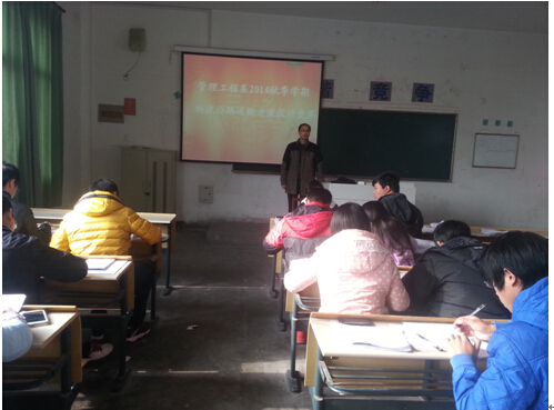 2014秋季学期管理工程系公路运输方案设计竞赛于2014年12月11日下午在教学楼401教室圆满结束。本次比赛是以某公路运输公司为背景,方案涉及运输车辆选择、货物配载、货物装卸、中转、费用计算等方面知识技能。