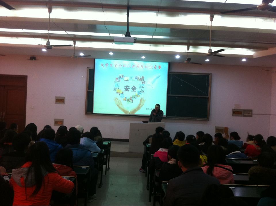 为了让同学们进一步广泛了解安全知识,提高自身防范意识。管理工程系于2014年12月19日下午举办了一次安全讲座,参加本次活动的人员有系党支部书记汤大益老师,系团总支胡静老师,学生处秘书钟海珍老师,及学生会主席和各部长。