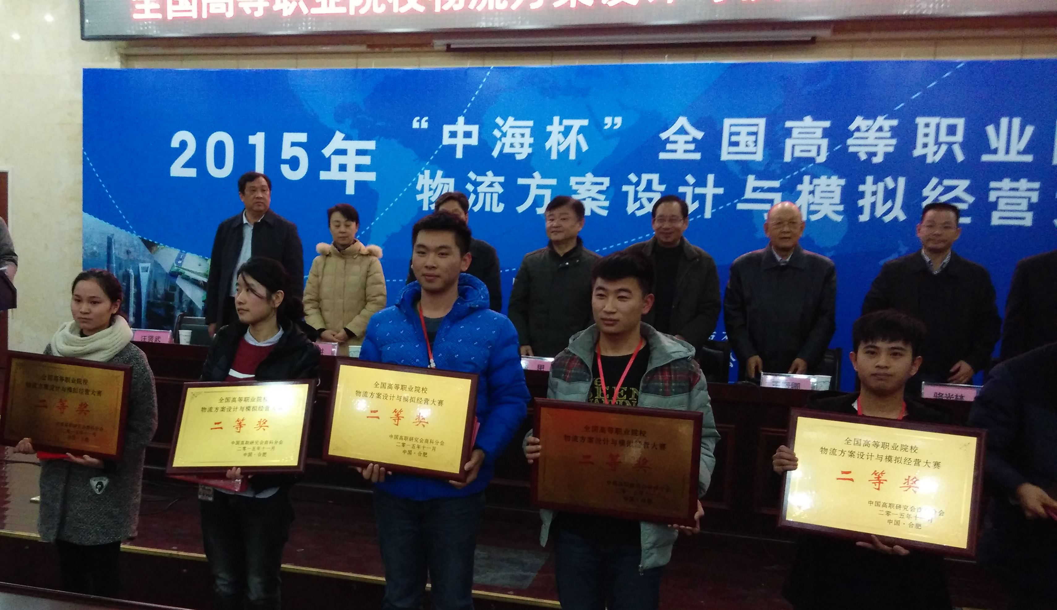 2015年11月28日,由中国高职研究会商科分会举办的2015年“中海杯”全国高等职业院校物流方案设计与模拟经营大赛在合肥市安徽工商职业学院举行。有来自湖南现代物流职业技术学院、湖州职业技术学院、浙江工商职业技术学院等18个省外和安职院、安财、安徽机电、安徽水利水电等17个省内代表队参加了本次比赛。beat365由管理工程系14物流管理专业唐俊、章江涛、杨园园三位同学组成的团队在比赛中沉着冷静、充分展示了训练水平和自身能力,以优异成绩荣获二等奖,名列安徽省第一。