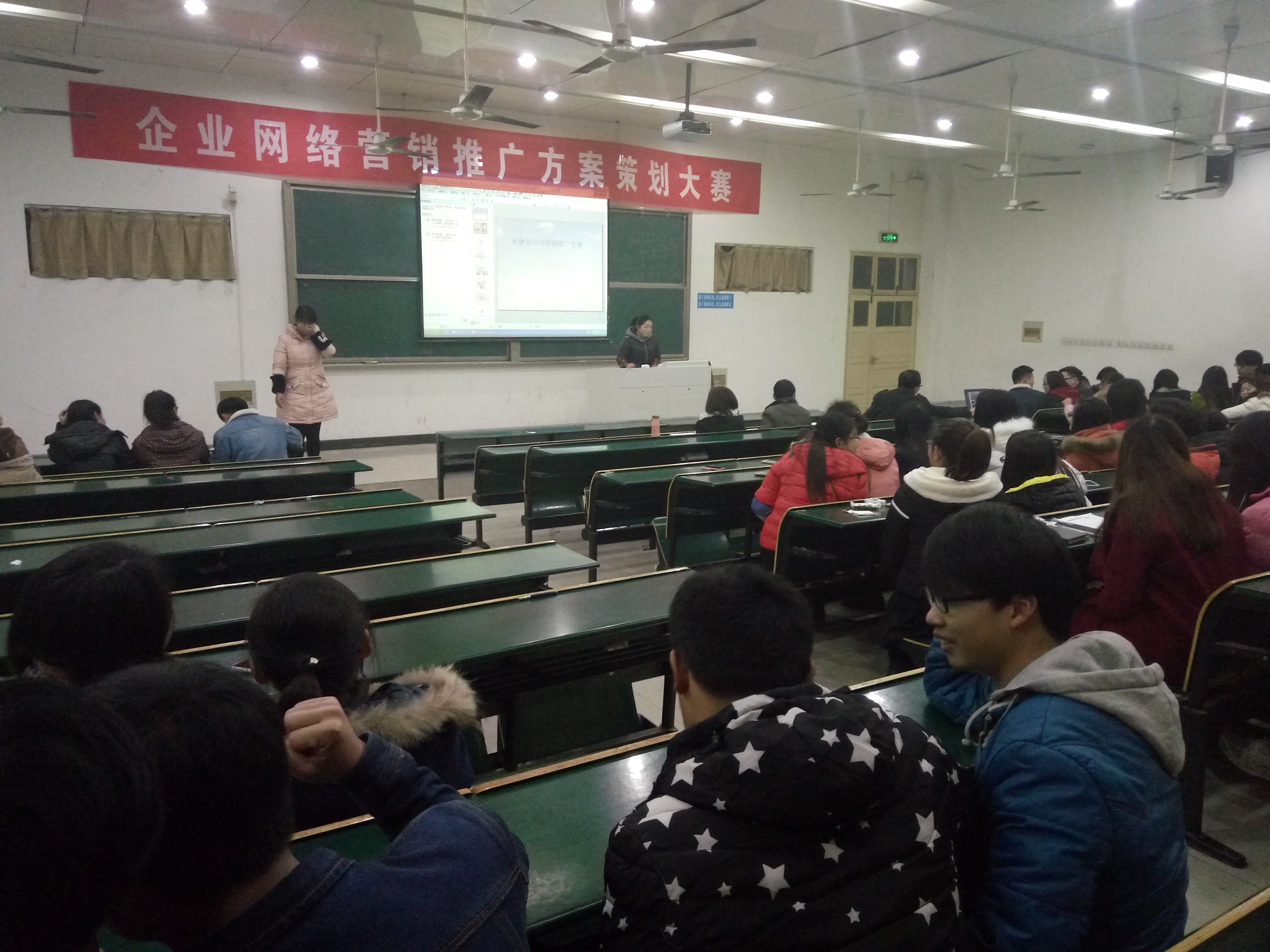 为贯彻学院教学改革和创新实践活动的指导意见,12月23日晚,管理系14市场营销和14电子商务专业“企业网络营销推广方案策划大赛”在教学楼阶梯103教室隆重举行。此项技能竞赛结合网络营销实务课程展开,14市场营销和14电子商务专业全体学生参加。