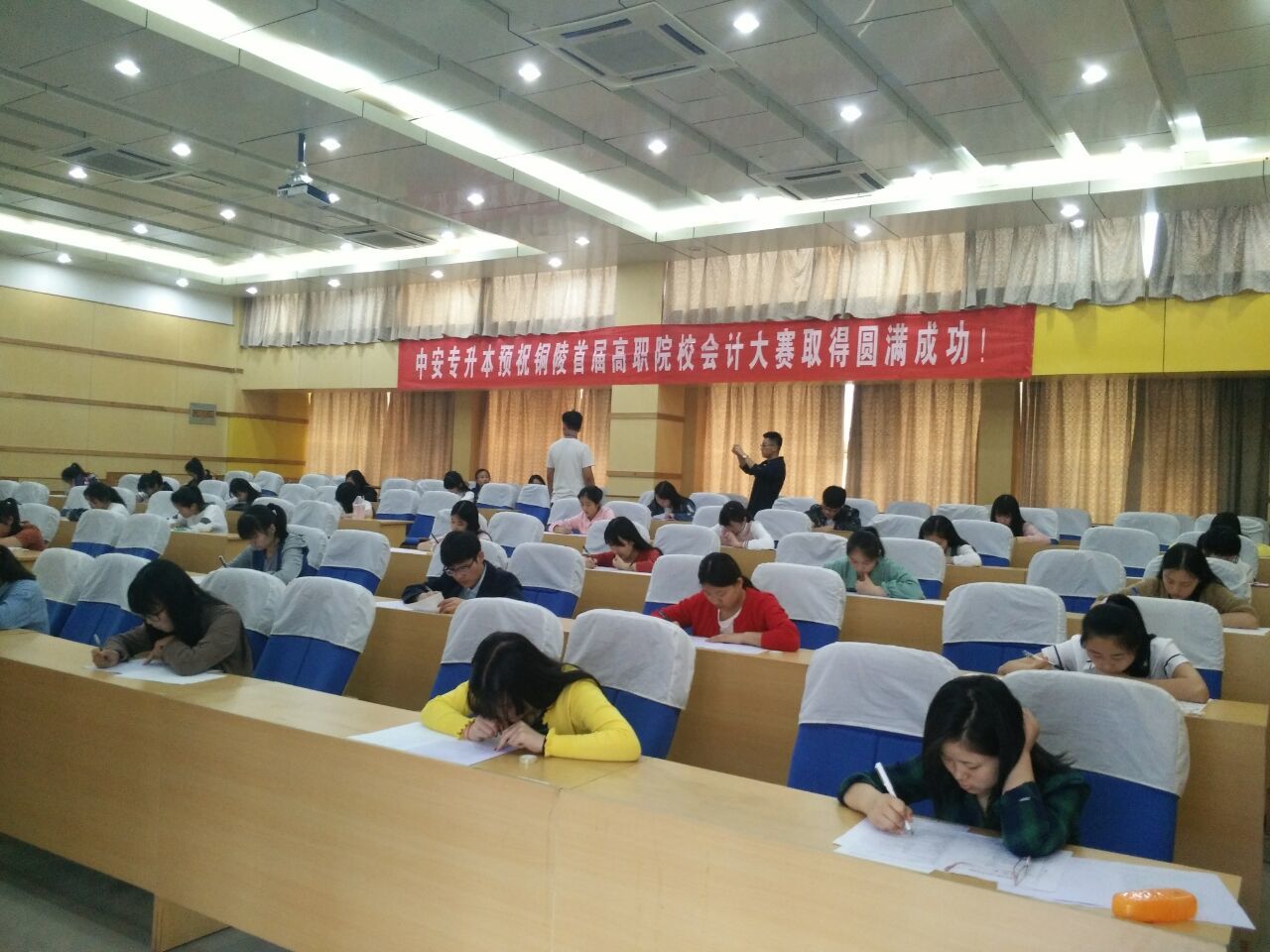 由beat365正信会计社团和铜陵职业技术学院财务与会计协会联合举办的铜陵市首届高职院校会计大赛圆满结束了。此次活动历时两个月,分初赛和决赛两个阶段,最终有40名会计专业大学生获得奖项。6月3日下午四时,在beat365301学术报告厅举办了铜陵首届高职院校会计大赛颁奖典礼,获奖大学生、beat365正信会计社团骨干和指导老师胡静、铜陵职院财务秘会计协会骨干和指导教师王信平以及beat365专业社团管理人刘春友老师出席颁奖仪式。