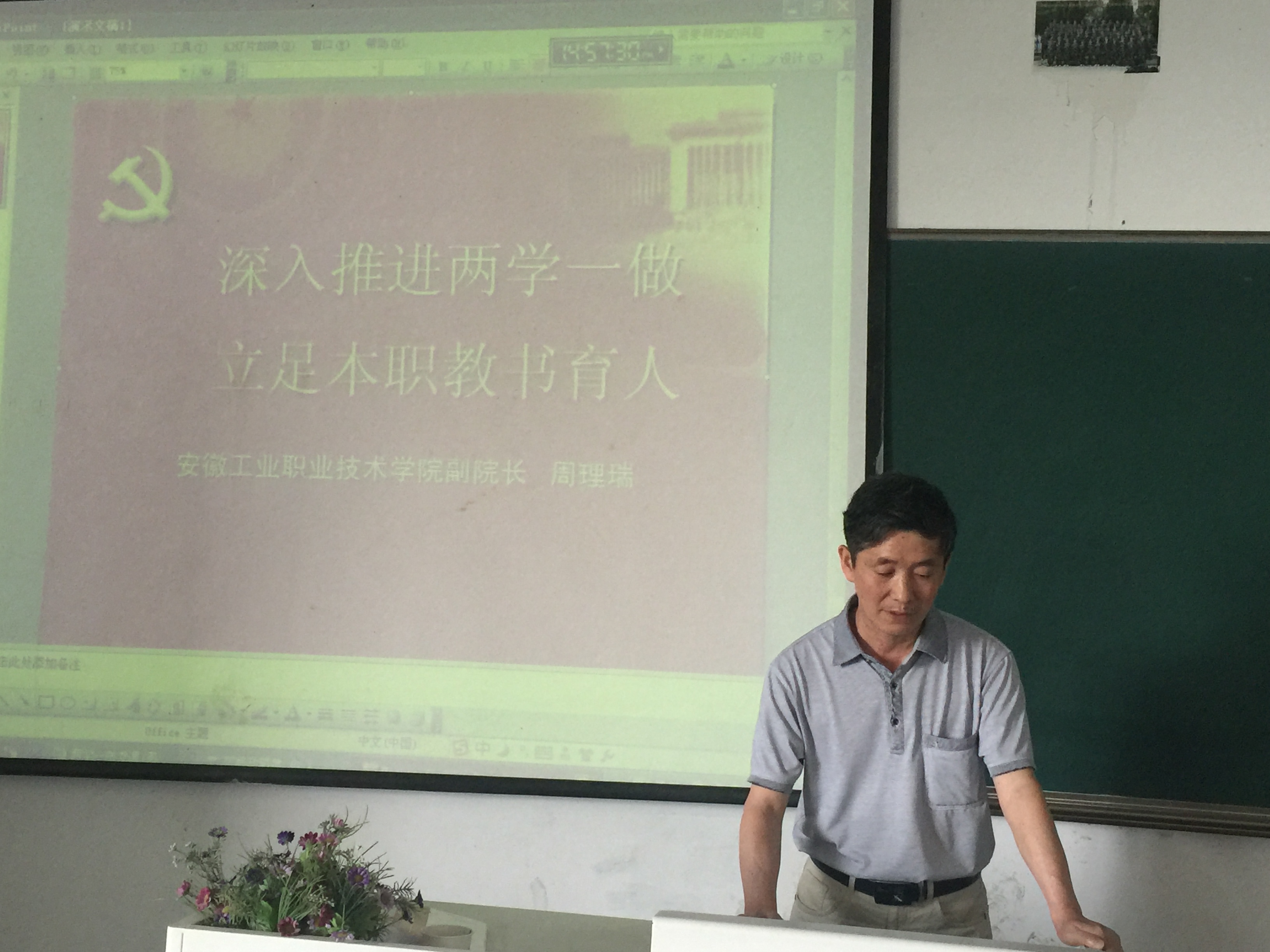 6月17日下午三点,管理工程系党支部开展了“两学一做”专题党课活动。学院副院长周理瑞同志以“深入推进两学一做,立足本职教书育”为主题,为我系全体党员上了一堂生动地党课。在党课上,周理瑞深入细致地分析了两学一做学习教育活动的重大意义,围绕党章党规、条例准则、习近平总书记系列重要讲话精神、如何做一名合格的党员等内容进行讲述,全面细致对党章党规进行解读,让全校党员教师深刻领会习总书记系列讲话的精神实质。他指出,做一名合格的党员在工作中要做到“立足岗位做贡献”,在生活中彻底反“四风”,并把“争做合格党员”与“教书育人,为人师表”紧密结合起来,用自己的言行诠释什么是党员教师。参加专题党课的党员教师认真听党课认真做学习笔记并写下深刻的学习心得。通过本次学习,进一步提高了党员教师对党的认识。大家以此次专题党课为契机,践行党员干部标准,不断提高自己的政治理论水平和思想觉悟,立足教育教学本职工作,争做一名合格的党员教师。